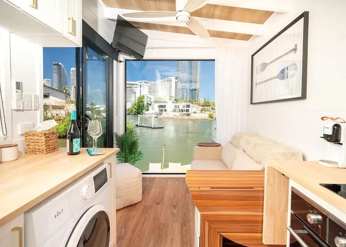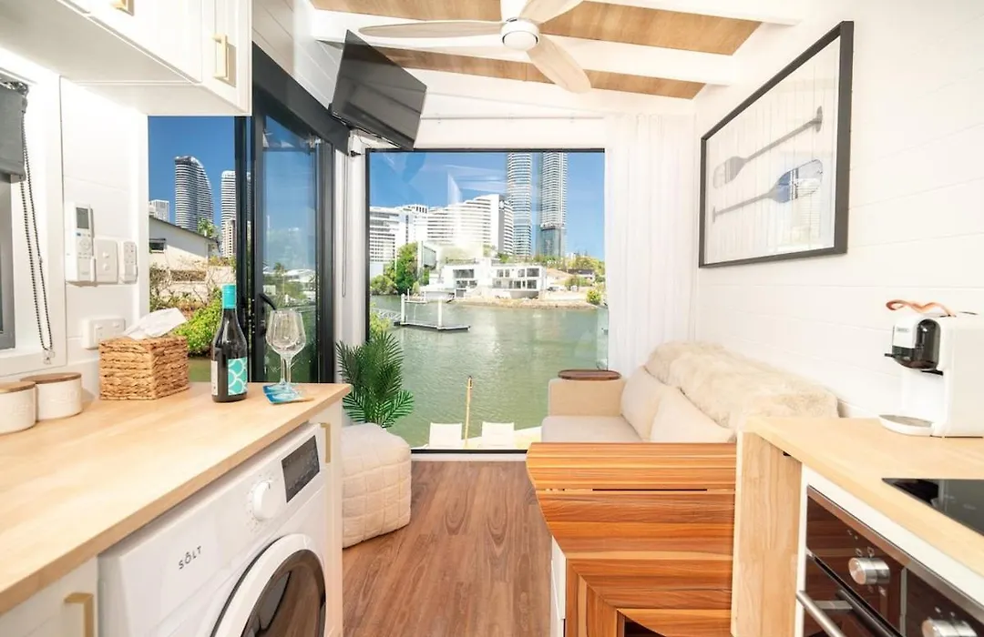 The 25 m² Tiny Home In The Heart Of Broadbeach-River Views! Gold Coast apartment, located in the Broadbeach Waters district of Gold Coast, just 1 km from Broadbeach, features views of the garden. Providing opportunities for canoeing will amplify the guests' experience.
